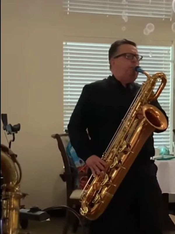 His musical life with the saxophone started at his 50th Birthday, when he realized that his midlife crisis was not going to include an affair, and he already had a convertible. For the second half of his life, it became clear, he wanted jazz saxophone to be a part of it.